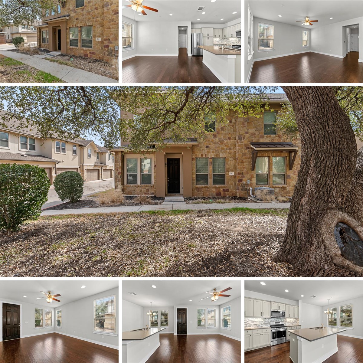 The main floor features an open living, dining, and kitchen layout filled with natural light, complemented by ceiling fans and stainless steel appliances. The kitchen flows seamlessly into the living space, making it perfect for everyday living and entertaining.